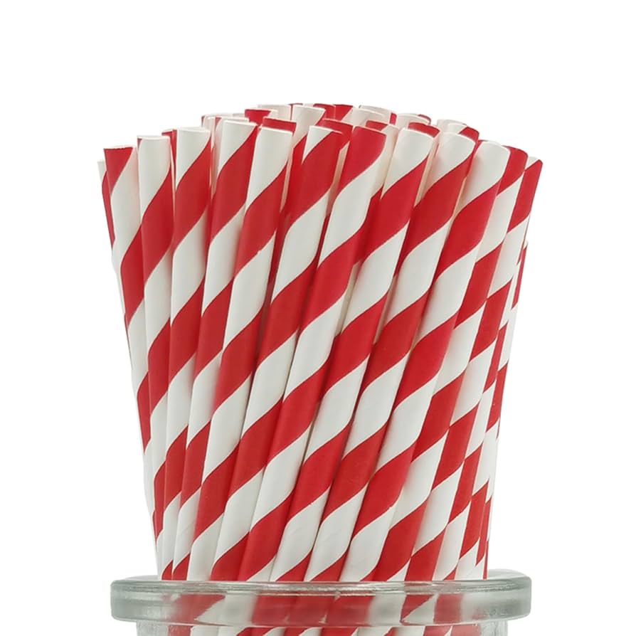 Red & White Striped Paper Straws (6mm x 197mm) – Eco-Friendly & Durable